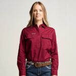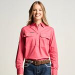 SOMERSET | Womens Half Button Long Sleeve Work Shirt - Black